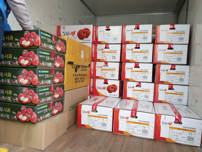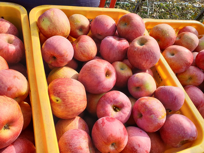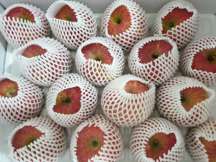 상자에 담을 때에도 사과의 꼭지가 과육을 찌르지 않도록