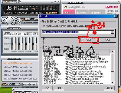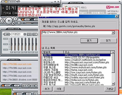 고정주소를 창에 적어넣으시고 열기를 누르시면 곰오디오 플레이창에 주소가 자동 가집니다