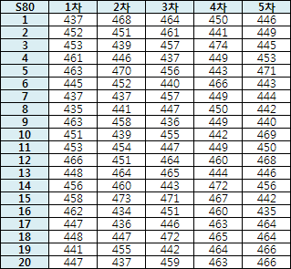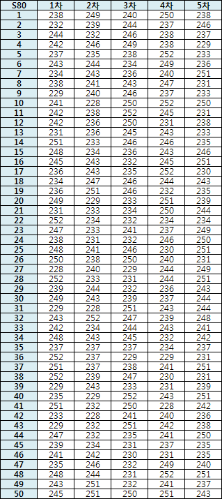 앞선 실험에서 사용하였던 +7 다이너스티 나이프 이베이젼의 데미지 결과와 비교하기 위해 동일한 무기인 +7 다이너스티 나이프(옵션 없음)로 추가 실험을 진행한 결과 아래와 같은 결과를 얻었다.