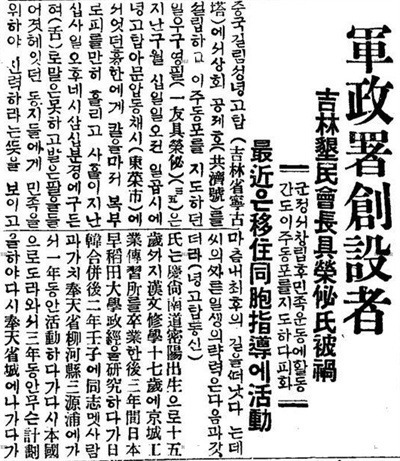 당시에도 구영필은 변절자가 아니라 군정서를 만들고 간도로 이주해오는
