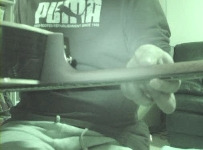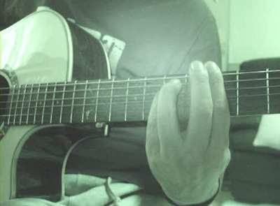 엄지가 너무 왼쪽이나 오른쪽으로 치우치면 코드를 잡은 손가락에 힘이 잘 안 들어 가고 손목도 무척 피곤해집니다.