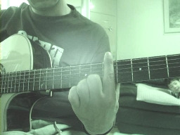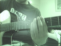 Tips: 1. 하이 코드를 잡을 때에는 기타 줄을 튀기는 오른 손의 팔을 이용하여