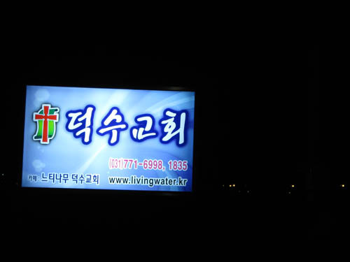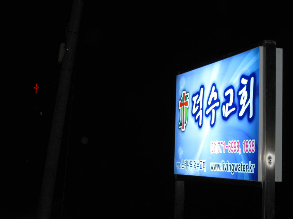 1. 멀리 보이는 가로등과 교회 간판 2. 도 안
