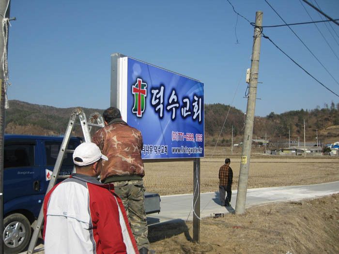 간판 제작 비용은 박홍재 집사께서 희사하셨고 최명환집사와 여러 분들이 함께 협력하셨습니다.