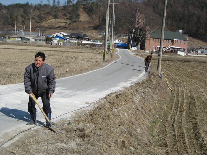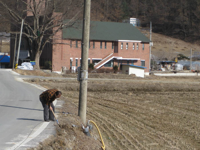 3. 공사 중인 남선교회원들 4. 김경일 집사가 전선을 묻으려 땅을 파고 있다.