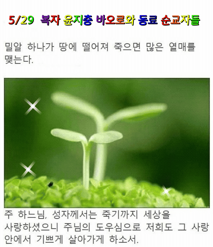 5/29 복자 윤지충 바오로와 동료 순교자들 작성자전예한(세례자요한)|작성시간24.05.29|조회수21 목록 댓글 0 글자크기 작게가 글자크기 크게가 다음검색 현재 게시글 추가 기능 열기 북마크 공유하기 신고 센터로 신고 댓글 댓글 0 댓글쓰기 답글쓰기 댓글 리스트
