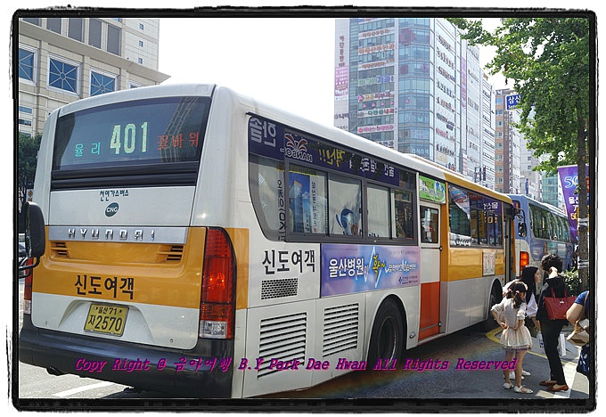 대왕암입구에서 울산 시외.고속터미널 정류장까지 이용한 신도여객 F/L 뉴슈퍼에어로시티 401번 입니다..^^