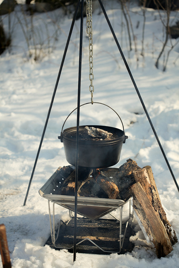 일단...더치오븐 하면....이렇게 삼각대에 걸어줘야 뽀대가 나죠~~~ ^^;;