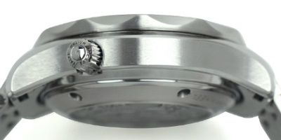 그럼 어떻게 하냐? 이 시계는 11시방향에 헬륨 가스 방출 밸브를 잘 보시면 아주 작은 구멍이 있습니다.