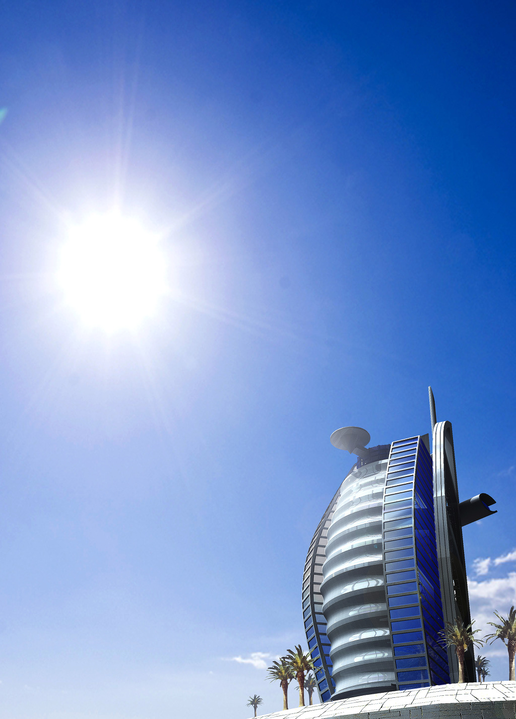물결치는 아라비아식 전통 돛 모양을 형상화하여 디자인된 건물 외관은 경이로운 건축 기술을 단적으로 보여준다.