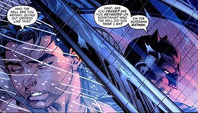 "뭐야 너 우둔한거야? 너 무슨 쪼다야? 내가 대체 누구라고 생각하는거야? 내가 바로 망할 배트맨이야!!!"