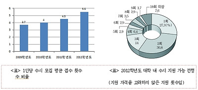 * 또한 총 모집 인원이 2012학년도보다 7,078명이 줄어들어 수시와 정시 모집에서 모두 선발 인원이 감소함에 따라 경쟁률이 증가