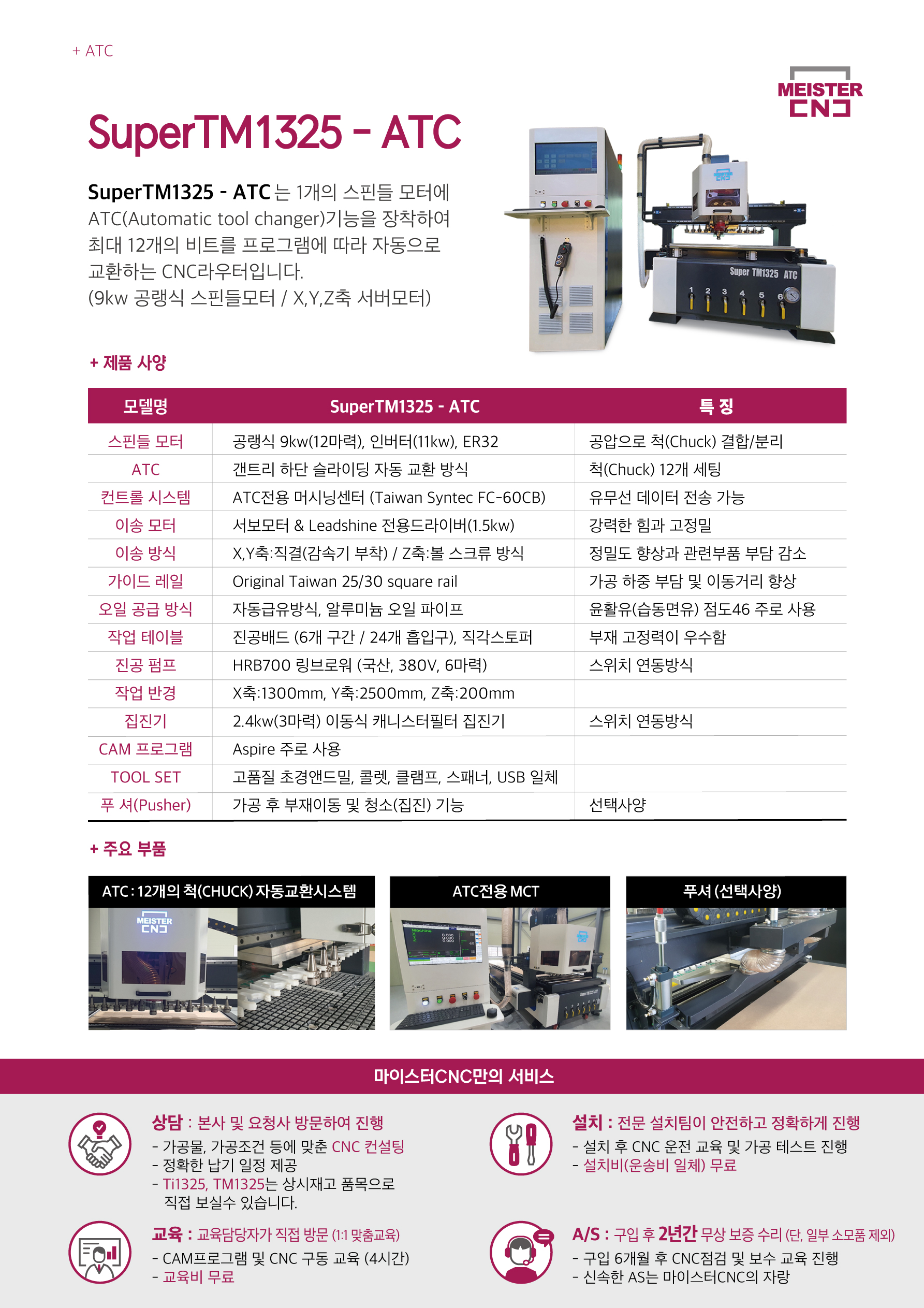 마이스터CNC의 Super TM1325 ATC의 성능과 결과물에 만족해 주셨습니다.