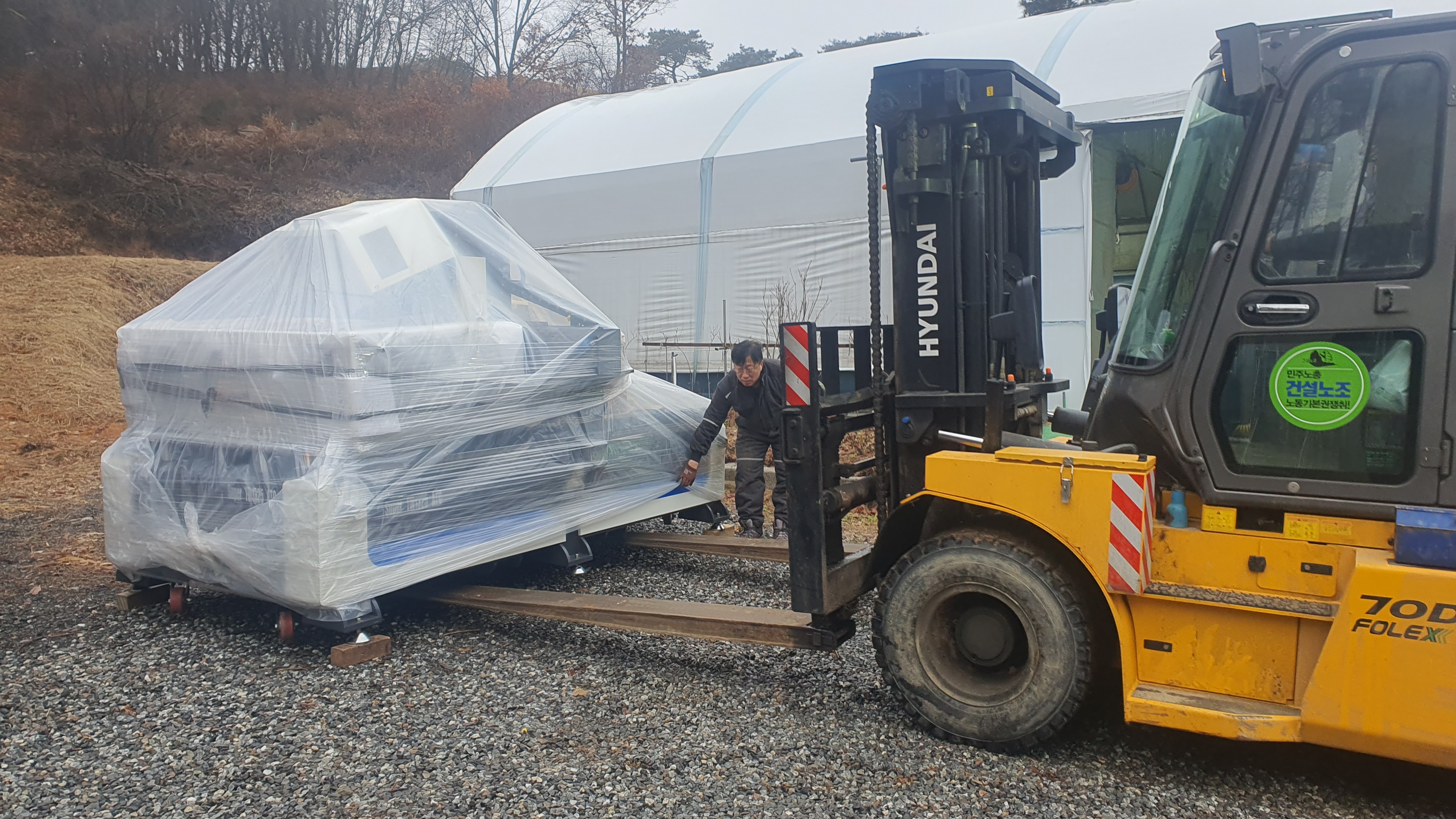 갑자기 내린 겨울비로 장비를 설치하는데 불편함이 있었지만 사전에 테스트를 마치고 완변한 포장과 운반작업으로 안전하게 설치할수 있었습니다.