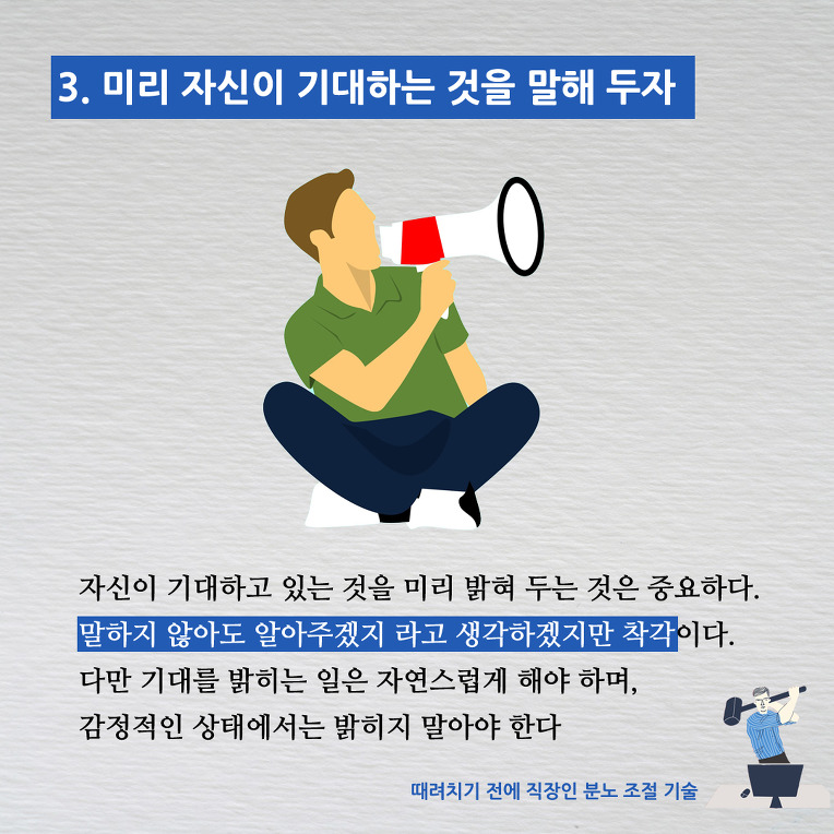 다만 기대를 밝히는 일은 자연스럽게 해야 하며, 감정적인 상태에서는 밝히지 말아야 한다는 점을 주의하자