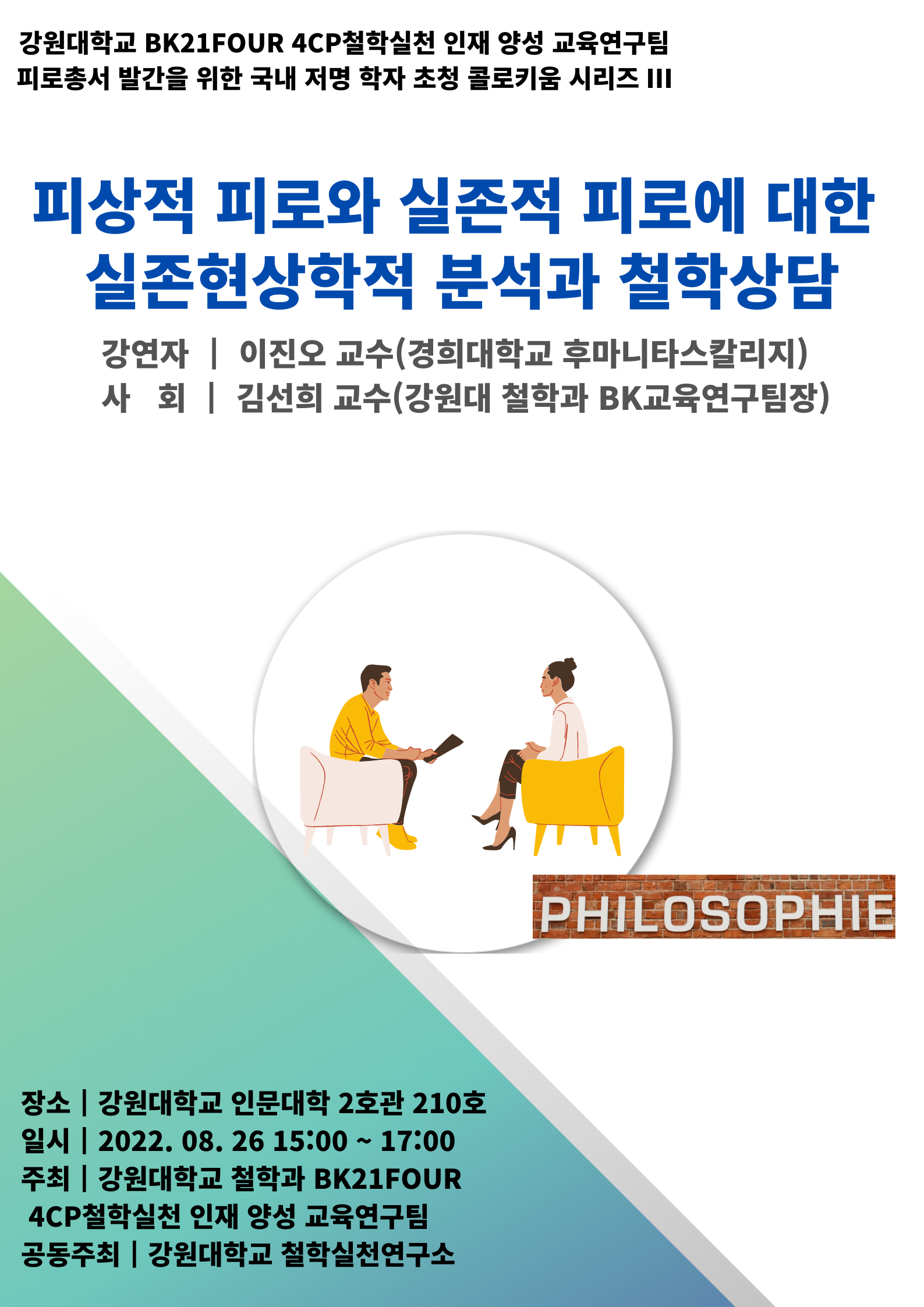 실존적 피로에 대한 실존현상학적 분석과 철학상담 작성자이진오|작성시간22.08.19|조회수47 목록 댓글 0 글자크기 작게가 글자크기 크게가 다음검색 현재 게시글 추가 기능 열기 북마크 공유하기 신고 센터로 신고 댓글 댓글 0 댓글쓰기 답글쓰기 댓글 리스트