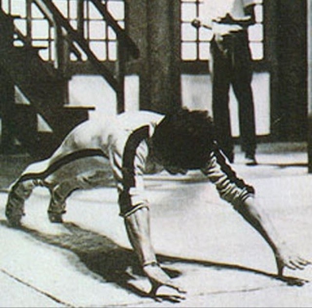 이소룡의 엄지 손가락 푸시업입니다. 보통 주먹쥔 상태로 엄지를 구부려서 하는 데 비해 이소룡은 손과 손가락을 핀 채로 엄청난 퍼포먼스를 보여주었습니다. 한팔 엄지검지 푸시업 영상도 유명하죠^^