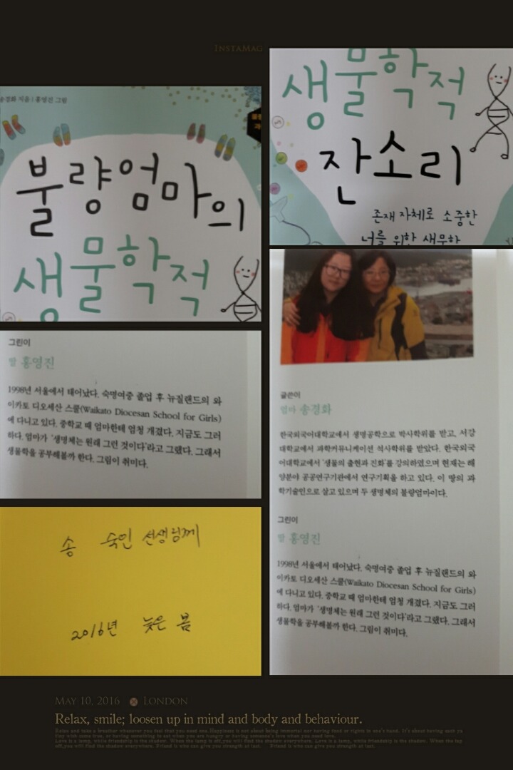선생님은 생물학의 용어들을 잘 모르지만 엄마의 글속에서 흥미로운 일들을 많이 발견하고 혼자 웃기도 했단다. 예나지금이나 한결같은 엄마의 모습을 발견했단다.