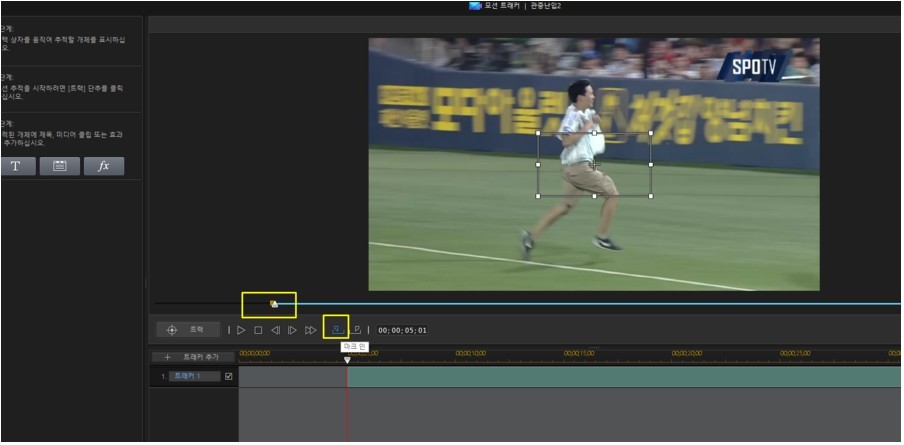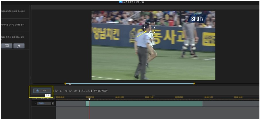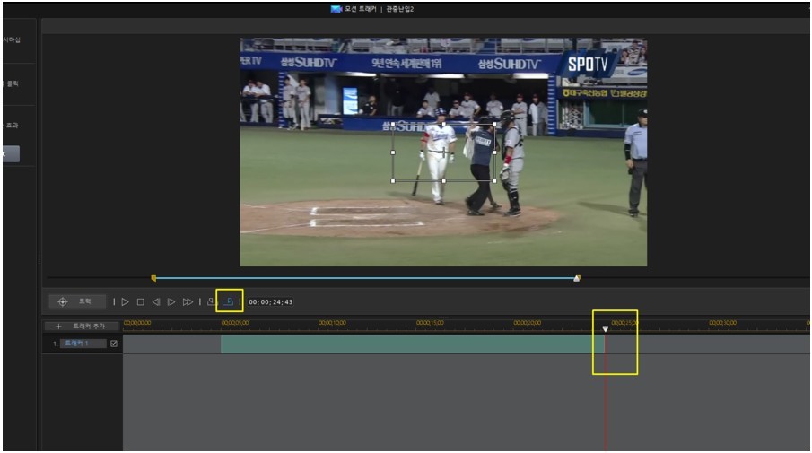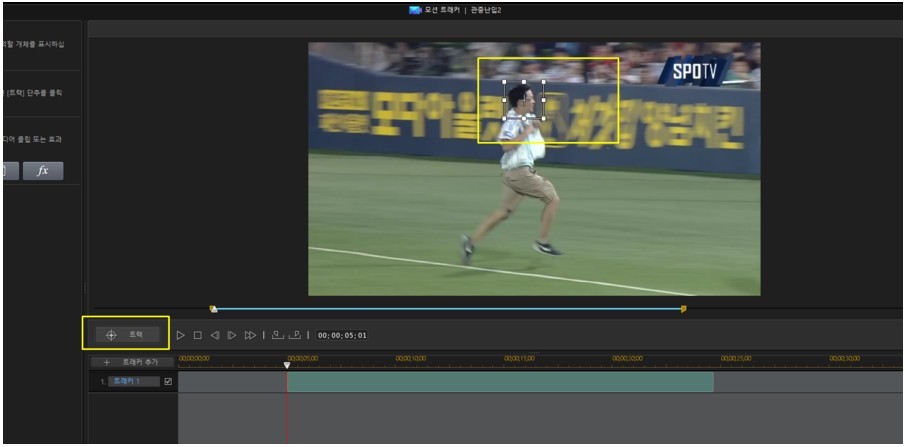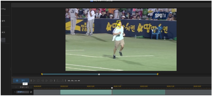 추적이 빗나간다고 생각되는 순간, 정지 버튼을 누르고 미리보기 화면에서 네모 상자를 움직여 제대로 맞추신후,
