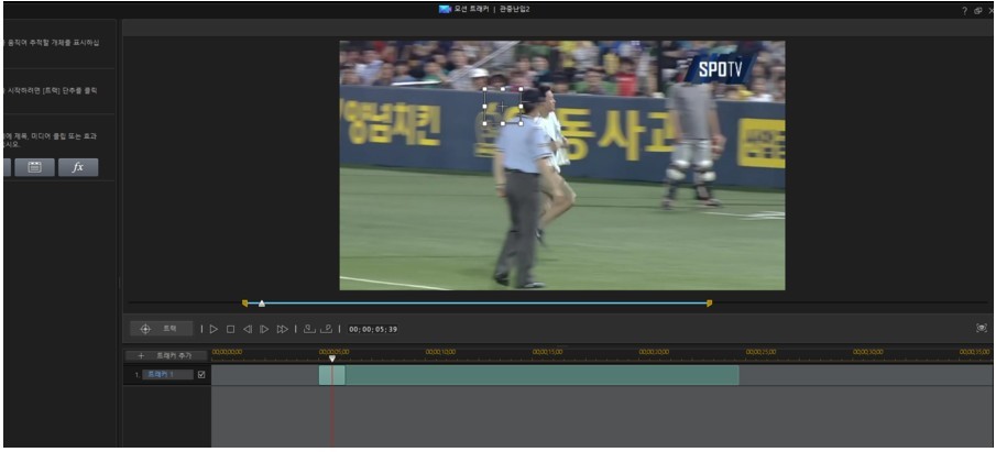 선택한 부분의 움직임을 추적하다가 위 사진처럼 두 사람이 겹치거나 하는 부분이 있으면 추적기가 빗나갈 수 있습니다.
