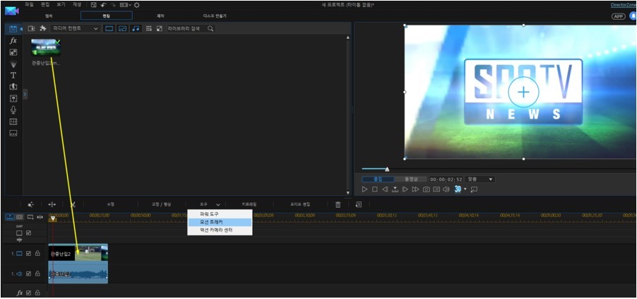 나타나는 창이 바로 이번에 파워디렉터 14 버젼에 새로 추가된 모션 트래커 창입니다.
