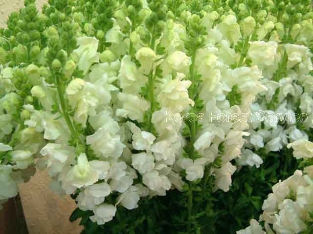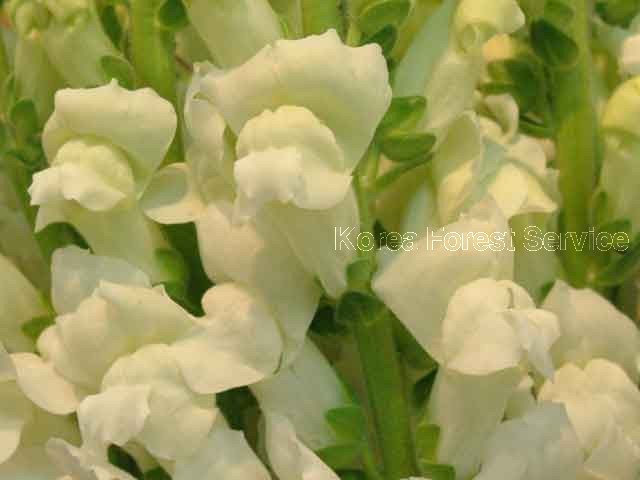 | 가을에 뿌린 것은 4~5월, 봄에 뿌린 것은 5~7월에 개화하며 품종에 따라 가지각색이고 총상화서는 원줄기 끝에 달리며 선모가 있고 소화경이 짧다. 꽃받침은 5개로 갈라지며 화관은 기부가 두툼한 입술모양이고 그 모양이 헤엄치는 금붕어같아 금어초라고 한다. 4개의 수술 중 2개가 짧다. | |||||||||||||||||||||||||