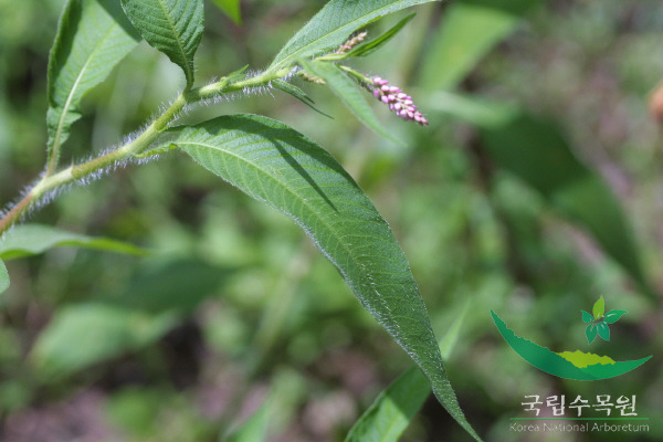 | 잎은 호생하고 난상 피침형이며 양끝이 좁고 길이 7-15cm, 폭 1.5-4cm로서 양면에 선점이 있으며 초상의 탁엽은 길이 7-15mm로서 털이 있고 원통모양이다. | |||||||||||||||||||||||||