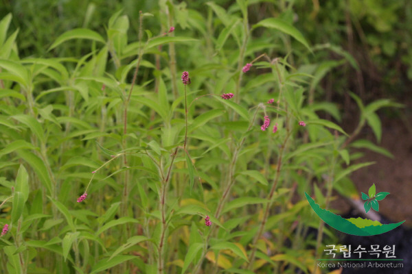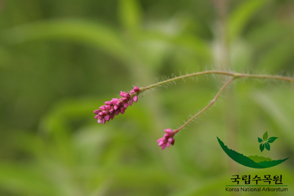 | 꽃은 6-9월에 피고 홍자색이며 수상화서는 가지 끝과 엽액에서 나오고 길이 3-5cm로서 적색의 잔꽃이 밀착하여 아름답다. 화피는 길이 2-3mm로서 5개로 갈라지며 수술은 8개이고 화피보다 짧으며 암술대는 3개로 갈라지고 자방은 세모진다. | |||||||||||||||||||||||||