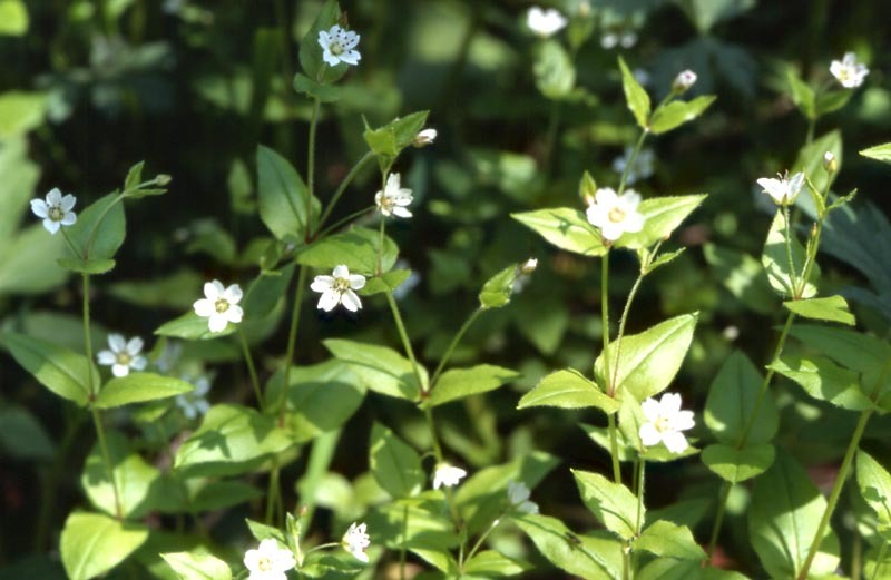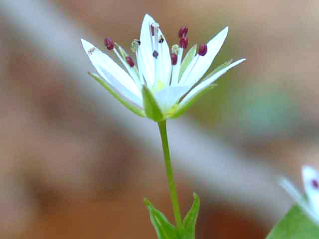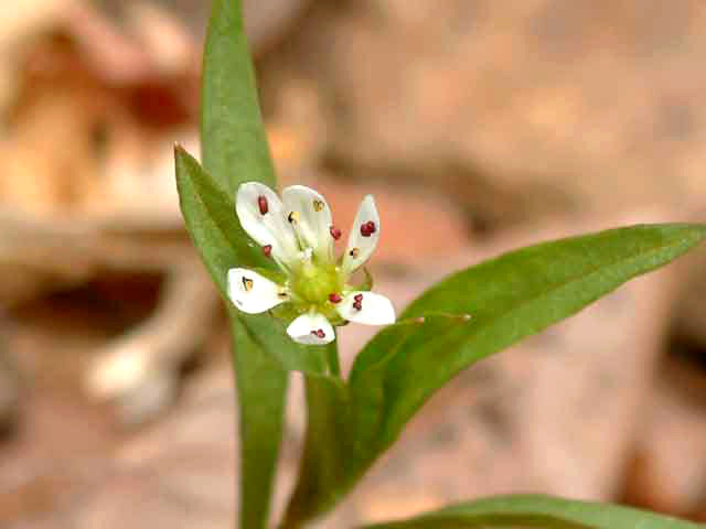 | 화병은 윗부분의 엽액과 끝에서 1-2개씩 나오며 길이 15mm정도로서 털이 있고 끝에 꽃이 1개씩 달리며, 꽃받침은 4-5장으로 털이 있고 꽃잎은 도란형이며 길이 4-6mm로서 백색이다. | |||||||||||||||||||||||||