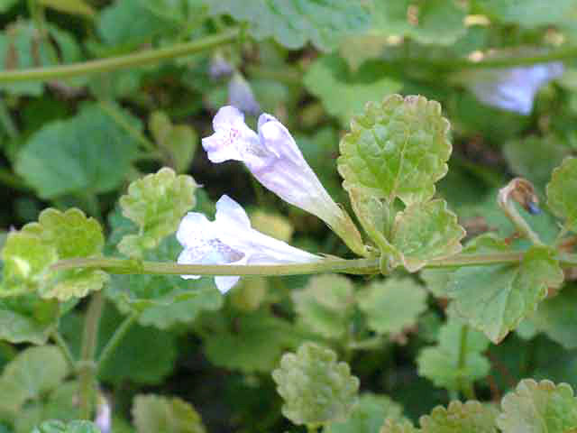| 잎은 대생하고 난형 또는 신장상 원형으로 길이 1.5~2.5cm, 나비 2~3cm이며 끝은 둥글고 밑은 심장형이며 가장자리에 둔한 톱니가 있다. | |||||||||||||||||||||||||