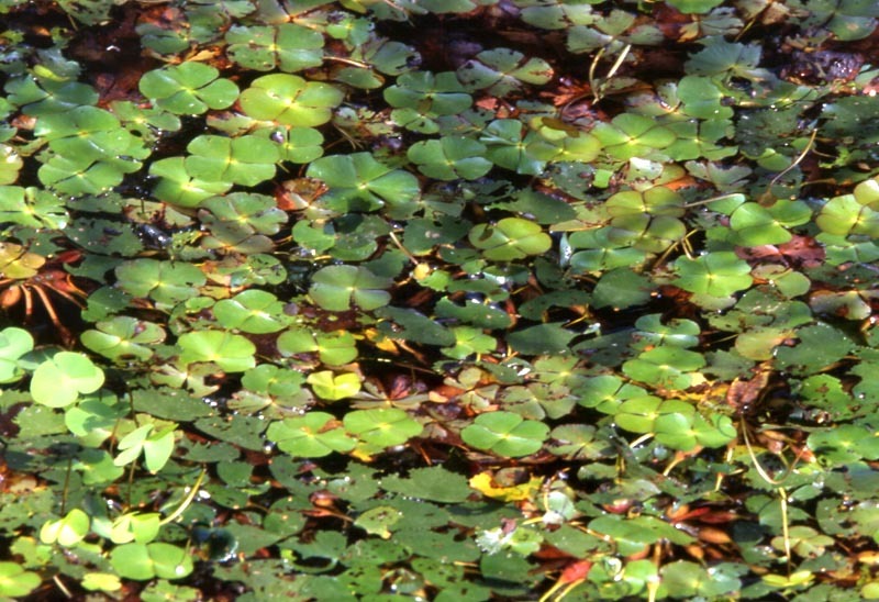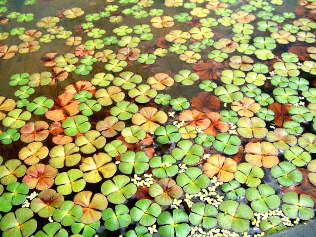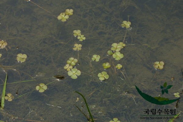 | 잎줄기 끝에 4개의 잎이 수평으로 퍼져서 자라며 물 위에 떠 있다. | |||||||||||||||||||||||||