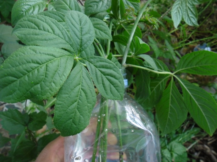 2. 페트병에 물을 담고 자른 새 줄기를 꽃아 볕이 드는 곳에 2주 정도 둔다.