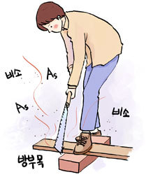 ○ 1955년 일본의 한 분유 제조 회사에서 값이 싼 공업용 비소를 첨가한 분유를 먹은 아기들이 비소에 중독되어 사망하거나 중독 증상을 보인 예가 있다. 최근 우리나라에서 공원이나 놀이터에 많이 사용되는 방부목(썩지 않는 나무)을 만드는데 사용된 비소가 문제가 되어 법적인 규제가 마련되었다.