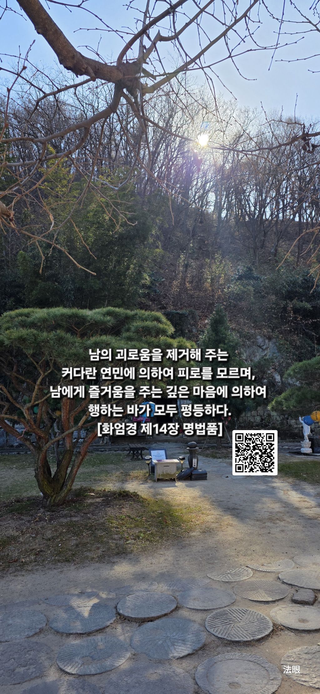 남의 괴로움을 제거해 주는 작성자법안|작성시간25.12.22|조회수8 목록 댓글 2 글자크기 작게가 글자크기 크게가 남의 괴로움을 제거해 주는 커다란 연민에 의하여 피로를 모르며, 남에게 즐거움을 주는 깊은 마음에 의하여 행하는 바가 모두 평등하다.[화엄경 제14장 명법품] 다음검색 현재 게시글 추가 기능 열기 북마크 공유하기 신고 센터로 신고 댓글 댓글 2 댓글쓰기 답글쓰기 댓글 리스트 작성자맛장 | 작성시간 25.12.22 나무아미타불 나무아미타불 나무아미타불 _()_()_()_ 작성자전법심 | 작성시간 25.12.22 나무아미타불나무아미타불나무아미타불_()_()_()_ 댓글 전체보기