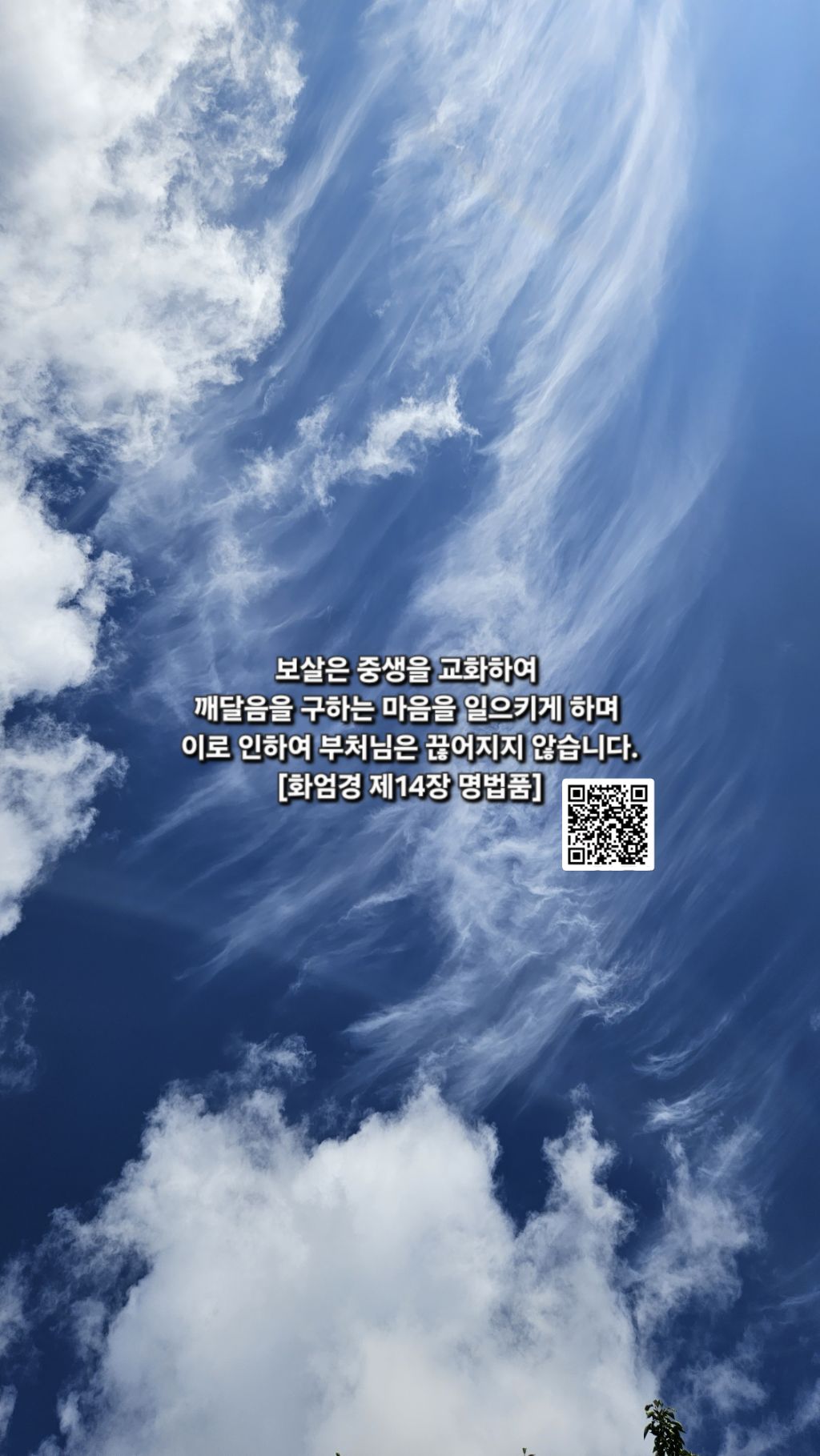 보살은 중생을 교화하여 작성자법안|작성시간25.12.24|조회수11 목록 댓글 2 글자크기 작게가 글자크기 크게가 보살은 중생을 교화하여 깨달음을 구하는 마음을 일으키게 하며 이로 인하여 부처님은 끊어지지 않습니다.[화엄경 제14장 명법품] 다음검색 현재 게시글 추가 기능 열기 북마크 공유하기 신고 센터로 신고 댓글 댓글 2 댓글쓰기 답글쓰기 댓글 리스트 작성자전법심 | 작성시간 25.12.24 나무아미타불나무아미타불나무아미타불_()_()_()_ 작성자맛장 | 작성시간 25.12.24 나무아미타불 나무아미타불 나무아미타불 _()_()_()_ 댓글 전체보기