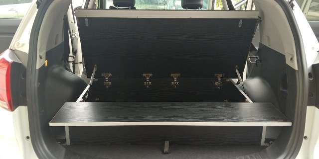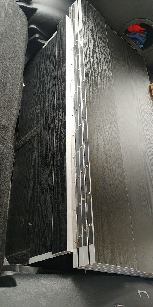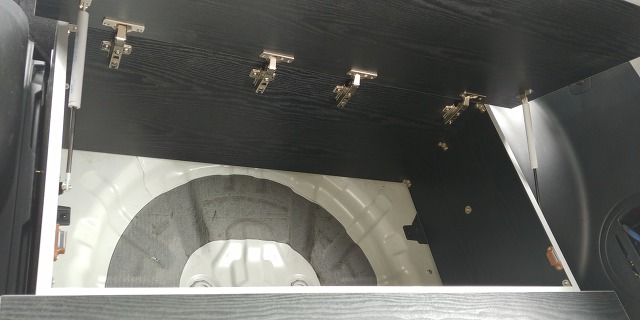 기존에 스페어공간까지 다 활용해서 수납까지 되고 차박시에는 펼치고 고이기만 하시면 바로 차박 가능하게 제작해드렸습니다. 멀리서 오신만큼 기분좋게 가시는모습에 힘들었던 것 보단 보람이 더 생기더라고요^^