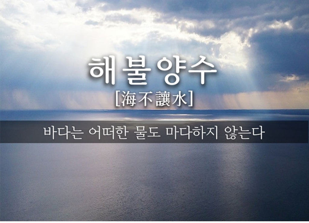 그런데 우리의 사자성어 중에 "해불양수(海不讓水)"라는 말이 있어요