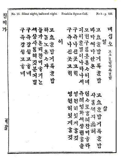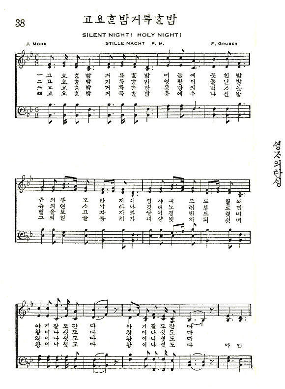 이 '고요한 밤'은 현재 130개 언어 193개 버전으로 번역되어 널리 불린다 하는데