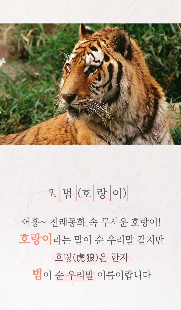 사람들은 호랑이는 우리말이고 범은 한자어인줄 알고 있어요