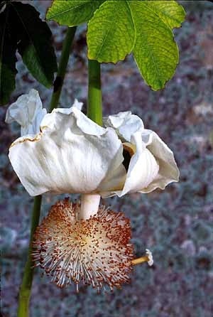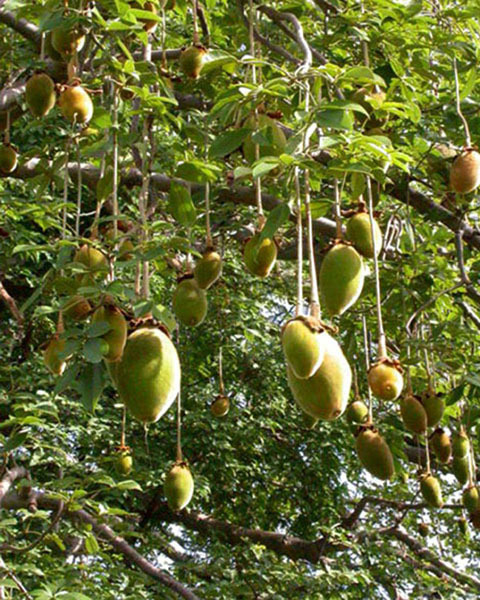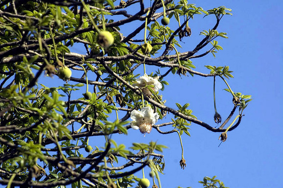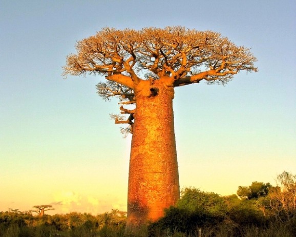 ♣측막태좌목 판야과 바오밥속 식물의 총칭. 또는 열대 아프리카가 원산지인 바오밥 나무 A.digitata를 가리킨다. 디기타타 종은 기둥이 굵은 독특한 모양의 낙엽교목으로 거꾸로 심은 당근과 비슷하다. 나무 높이 18m, 기둥의 지름이 9m나 되며, 수령 2000년으로 추정되는 거목도 있다. ♣잎은 5∼7개의 작은 잎으로 장상 복엽이다. 꽃은 백색이며 지름 15cm 정도로 꽃잎은 5개이다. 꽃자루는 길고 밑으로 처지며, 지름 15㎝의 흰색 다섯꽃잎 꽃이 핀다. 수술은 여러 개이고 밑 부분이 통 모양으로 유합(癒合)되어 있다. ♣열매는 수세미 외처럼 생기고 길이 20∼30cm이며 털이 있고 딱딱하며 긴 과경(果梗)이 있으며 지름 1㎝ 정도의 종자가 많이 있다. 열매가 달려있는 모양이 쥐가 달린 것같아 죽은 쥐나무(dead rat tree)라고도 불리운다. ♣아프리카 바오밥 나무. 신성한 나무 중 하나로 꼽고 있으며 수령은 약 5000년 인 것도 있다. 나무 윗 부분에 몰려 있는 줄기가 마치 뿌리 모양을 하고 있어 신이 실수로 거꾸로 심어 생겼다는 이야기가 전해져 내려온다 꽃은 백색, 지름 15cm 정도, 꽃잎은 5개이다. ♣바오밥나무는 아프리카의 상징이자 아프리카 사람들의 영혼을 다스리는 신성한 나무다. 아프리카 에서 이 나무가 자라는 곳은 케냐와 탄자니아다. 어떤 이유에서인지 바로 이웃나라인 우간다에서는 아예 볼 수 없단다. ♣원산지에서는 신맛이 있는 과육이 청량음료로 이용되며 어린 잎은 식용, 종자는 식용·약용, 나무껍질은 섬유재료로 이용된다. 바오밥속에는 이 종외에 마다가스카르에 6종, 오스트레일리아에 2종이 있다. 마다가스카르 산인 A.za와 A.fony 및A.grandidieri의 멋진 표주박 형은 특이하다. 아프리카의 원주민은 바오밥나무를 보호 하며, 여러 목적에 이용한다. ♣아프리카 사람들에게 바오밥 나무는 아낌없이 주는 평생친구이다. 넉넉한 그늘은 쉼터가 되고 껍질은 밧줄과 낚싯줄로 쓰인다. 우기엔 몸통 가득 빗물을 품어 두었다 건기의 갈증을 풀어준다. ♣바오밥나무는 많은 살아 있는 생명체에게 일용할 양식을 제공한다. 마사이족처럼 아직도 문명과 거리를 두고 살고 있는 현지인들은 잎을 채소로 먹고 씨에 있는 펄프 성분을 이용해 신선한 음료수를 만들거나 해열및 지사제로 쓴다. 껍질은 끓여서 진통제로 쓰기도 하며아프리카 사람들에겐 쓰임새가 많은 나무이다. ♣ 제일 고마운 건 주린 배를 채워주는 잎과 열매다. 열매의 과육을 빻아 햇볕에 말리면 몇년씩 저장 가능한 식량이 된다. 그걸 아껴 먹으며 가뭄과 전쟁을 버텨낸 이들이 한 둘이 아니다. 이 나무의 영양학적 효능까지 드러난 건 최근의 일이다.