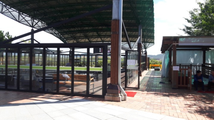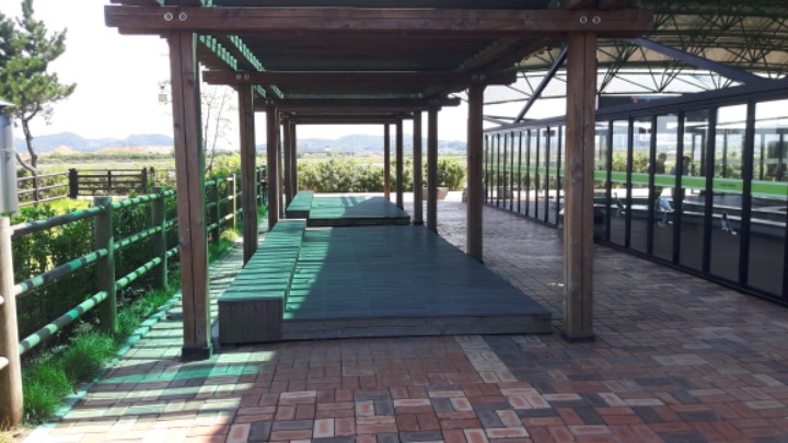 족욕장 옆에 편히 쉴수있는 공간
