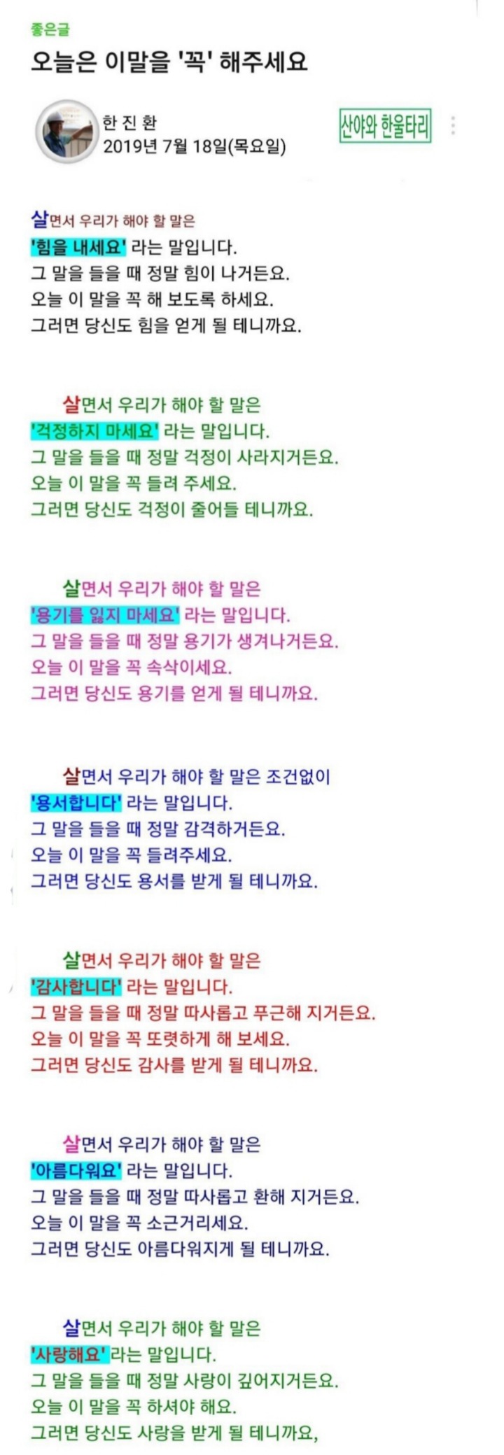 ❤ 오늘 이 말을 꼭 해 주세요 ❤