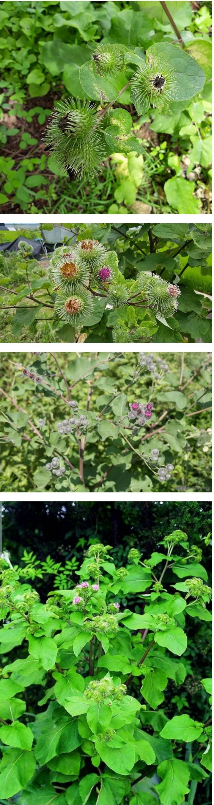 ✵✿이 용 : 우엉은 키가 1.5m 정도로 큰 편이고 꽃이 화훼적 가치가 적어 관상용으로 흔히 재배되진 않는다. 뿌리를 식용 또는 약용으로 쓴다. 채소용으로는 뿌리로 짱아치를 만들거나 조림을 만들어 먹는다. 뿌리에 이눌린, 팔미트산이 들어있어 이뇨제와 발한제로 쓰인다.
