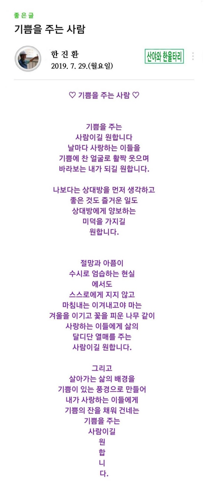 작성자한진환 작성자 본인 여부 작성자 작성시간 19.07.29 불곰게시판지기님!!!
