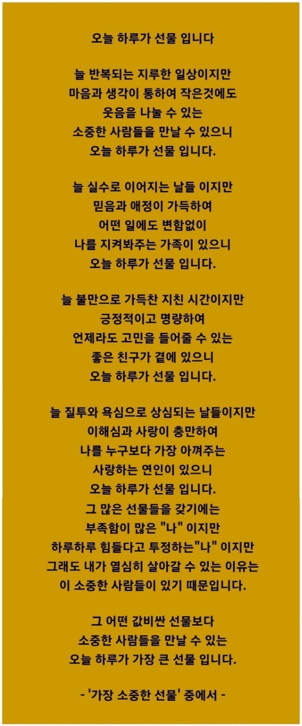 오늘 하루가 가장 큰 선물입니다.