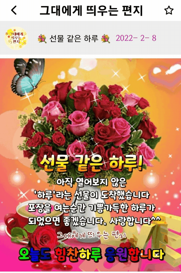 작성자황수애 작성시간 22.02.08 예쁜이미지 글 영상 잘보고갑니다 오늘도 웃는날 되소서 감사합니다