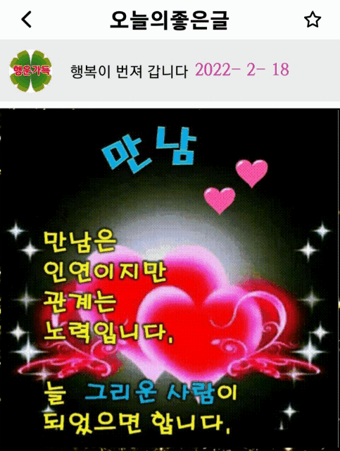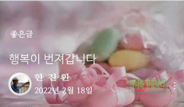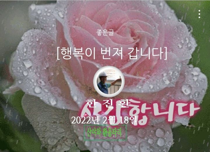 작성자황수애 작성시간 22.02.18 예쁜이미지 글 영상 잘보고갑니다 항상건강하시고 행복한 불금되세요 감사합니다