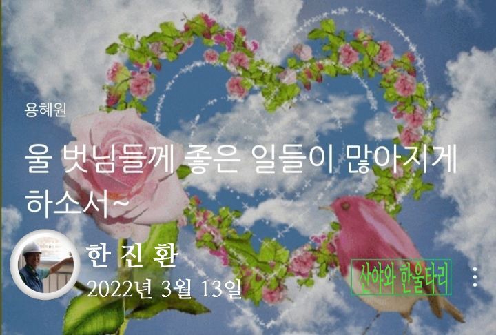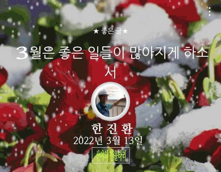 작성자황수애 작성시간 22.03.13 예쁜이미지 글 영상 감사합니다 복된저녁되세요
