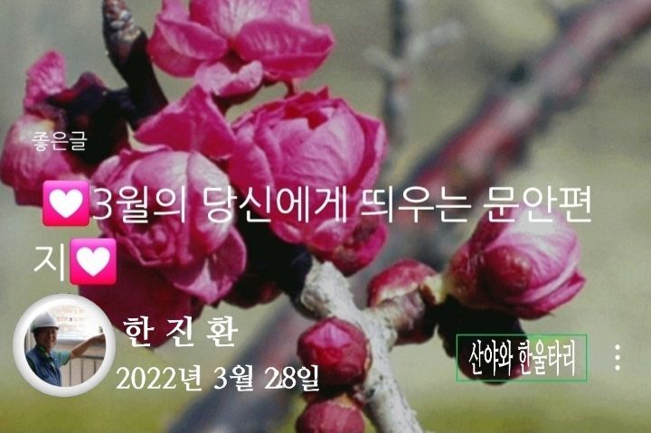 작성자황수애 작성시간 22.03.28 예쁜이미지 글 영상 잘보고갑니다 행복한날 되소서 감사합니다