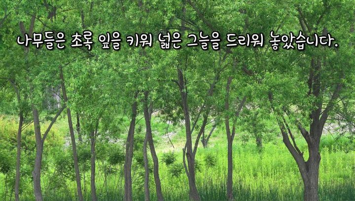 나무들은 초록 잎을 키워 넓은 그늘을 드리워 놓았습니다.